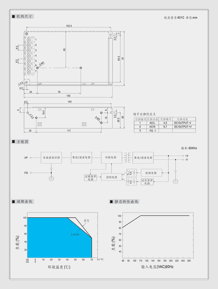 过载保护 过电流点在110%~150%,自动侦测自动复原