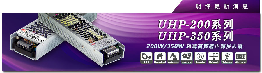 为因应市场需求,jinnianhui今年会新推出UHP-200/350系列,UHP家族产品具备3.3V~48V多款输出电压,峰值负载可达150%,全系列符合国际安规认证,除适用于显示屏应用外,无风扇、灌半胶设计对于要求电源轻薄短小且无风扇噪音的精密仪器设备,提供绝佳的解决方案!
